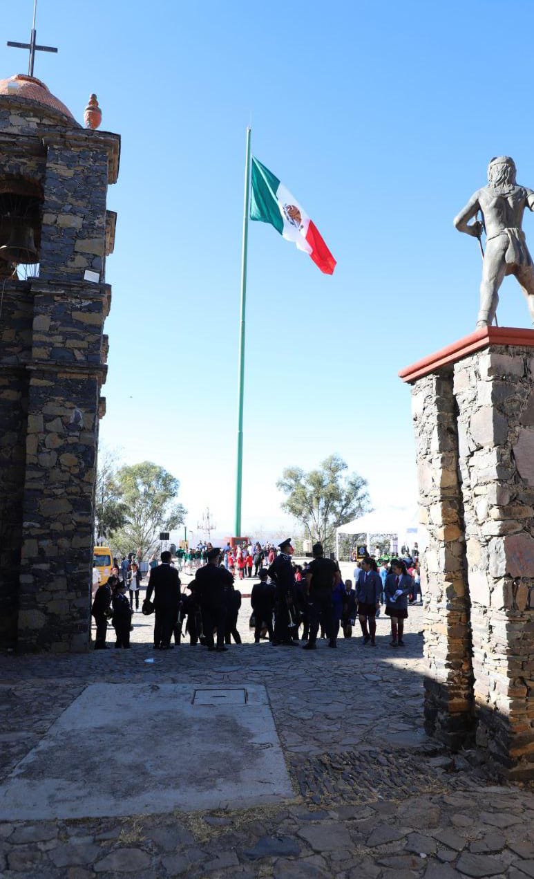 Con un emotivo acto cívico en la explanada del Cerro de la Reina, autoridades municipales, estudiantes, regidores, cuerpos de seguridad y ciudadanos de Tonalá celebraron el Día de la Bandera.