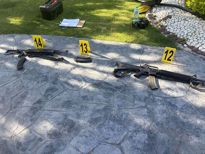 En una bodega, localizaron casquillos de distintos calibres, dos armas largas (una con cartuchos y cargador, otra sólo con cargador).