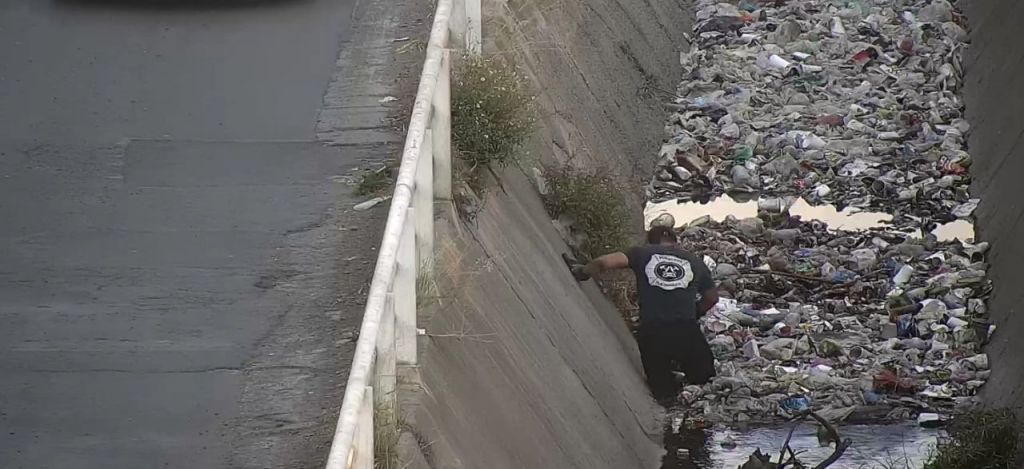 Bomberos de Tlajomulco rescataron a un perro que cayó en un canal pluvial ubicado en avenida Granada y boulevard Río de Janeiro, en el fraccionamiento Chulavista.