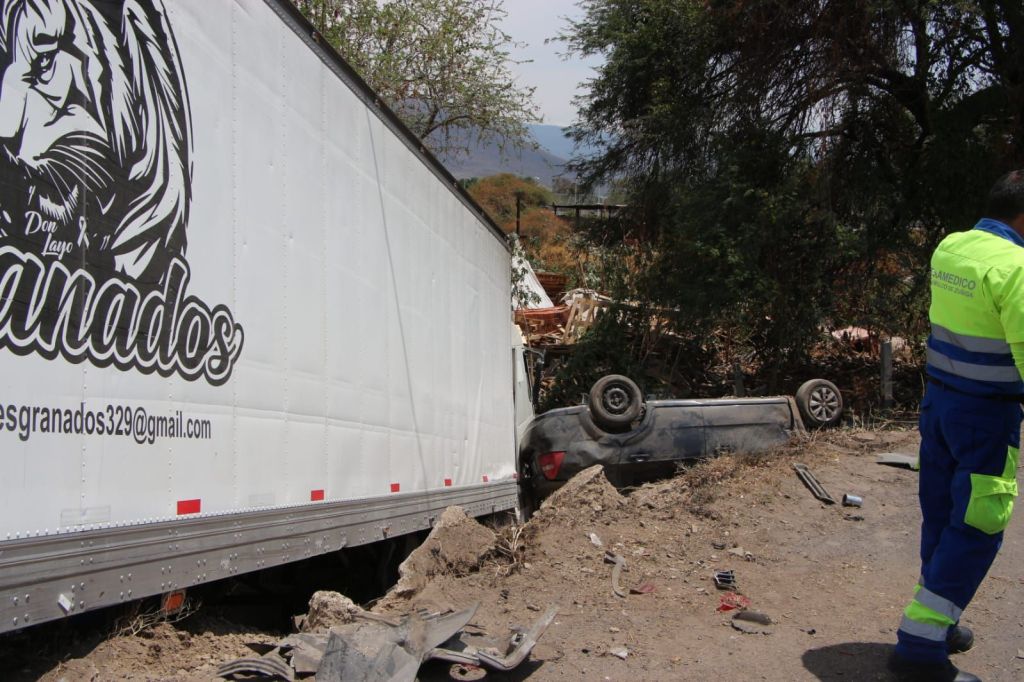 Un tráiler con caja seca provocó un choque múltiple al quedarse sin frenos cuando circulaba por la avenida Jesús Michel González, casi al cruce con Higuera, en la cabecera municipal de Tlajomulco.