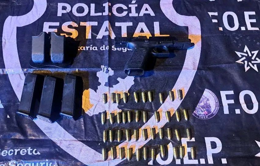 Al intentar huir fue asegurado y, tras una revisión, se le confiscó una pistola calibre 9 milímetros con tres cargadores y 43 cartuchos útiles.