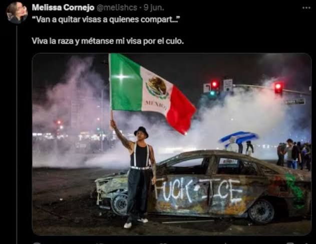 «Van a quitar visas a quienes compart…Viva la raza y métanse mi visa por el cu…”.