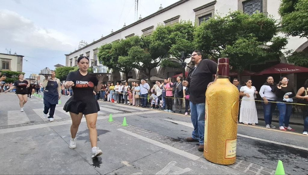 La salida y meta estuvieron ubicadas en la calle Juárez, en su cruce con Progreso, donde los competidores recorrieron 300 metros cargando una charola con una botella y vasos llenos.