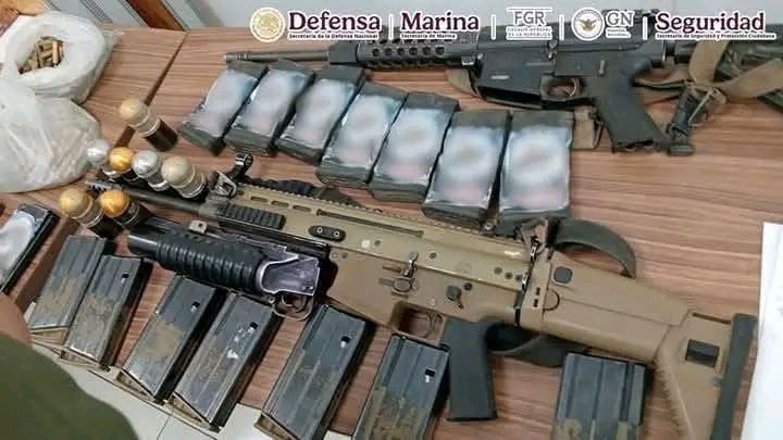 Durante el operativo, las autoridades aseguraron armamento, cartuchos útiles y dos camionetas blindadas tipo “monstruo”.