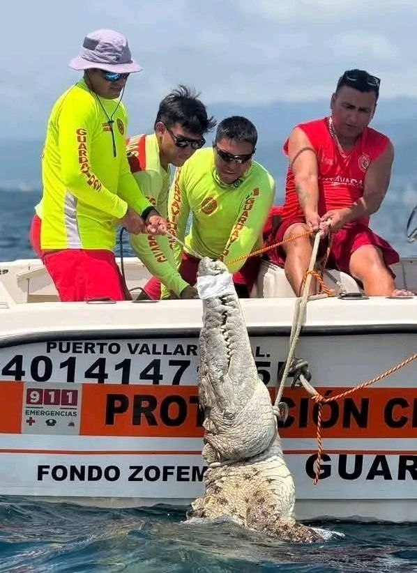 Un cocodrilo de 3.7 metros fue capturado con éxito en la zona sur de Puerto Vallarta por elementos del área de Guardavidas.
