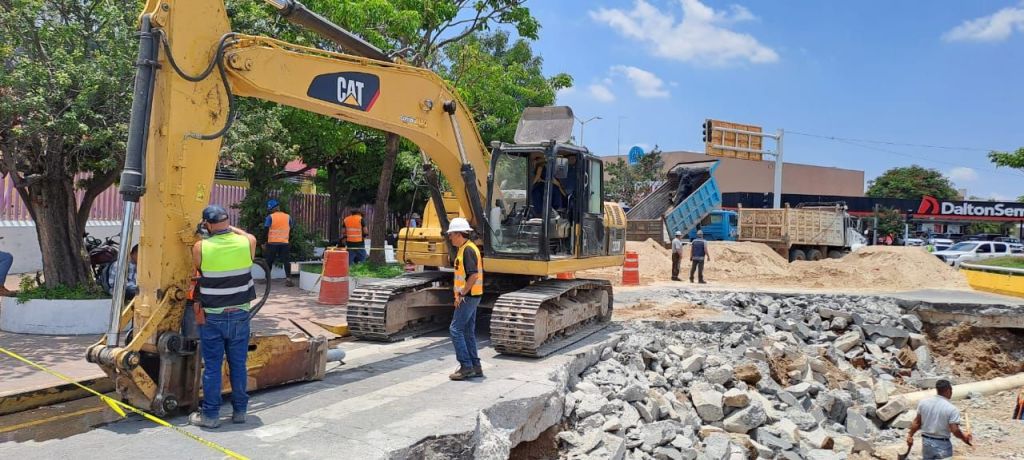 con una profundidad de 5 metros, afectando a seis colonias por el daño a un ducto de agua.
