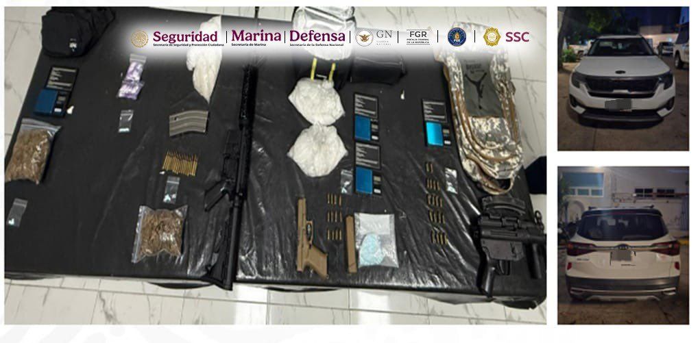 Durante el operativo, se aseguraron armas y drogas.