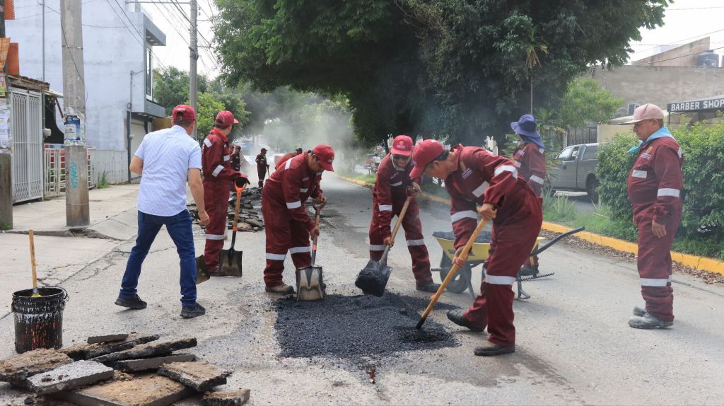 Busca atender los puntos más afectados del municipio con 10 cuadrillas y asfalto caliente.