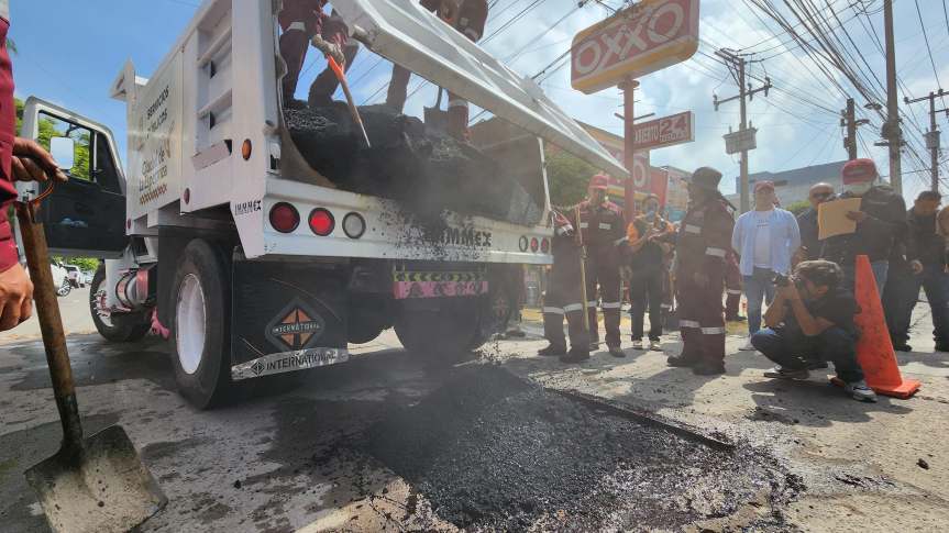 Busca atender los puntos más afectados del municipio con 10 cuadrillas y asfalto caliente.
