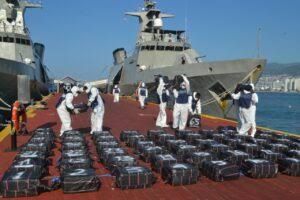 Autoridades federales aseguraron 601 kilos de cocaína en una embarcación interceptada frente a las costas de Guerrero, con lo que suman más de 1.5 toneladas incautadas en operativos recientes en el mar.