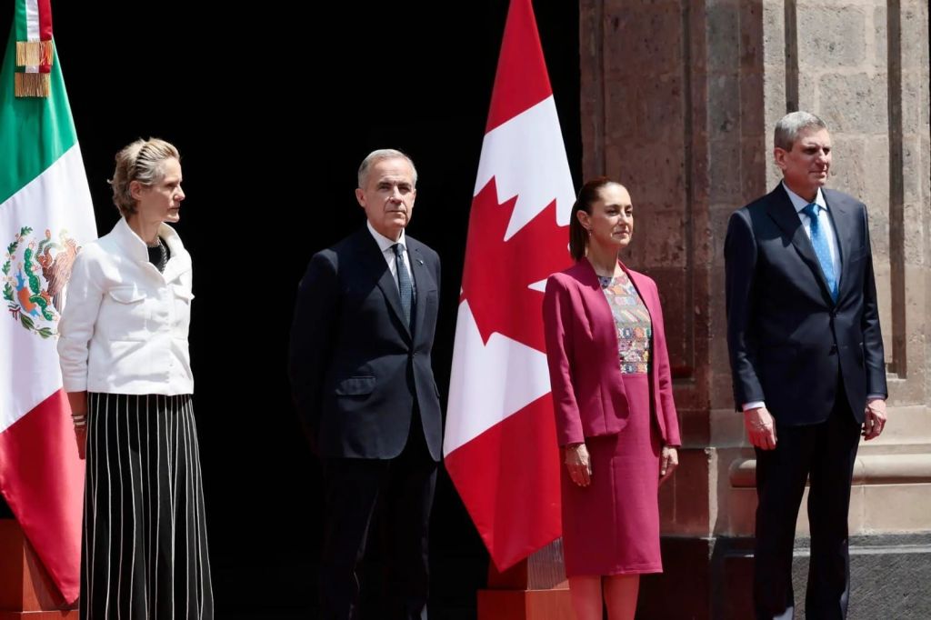 La presidenta Claudia Sheinbaum recibió este jueves al primer ministro de Canadá, Mark Carney, en Palacio Nacional, en medio de algunos gritos de protesta aislados en el Zócalo.