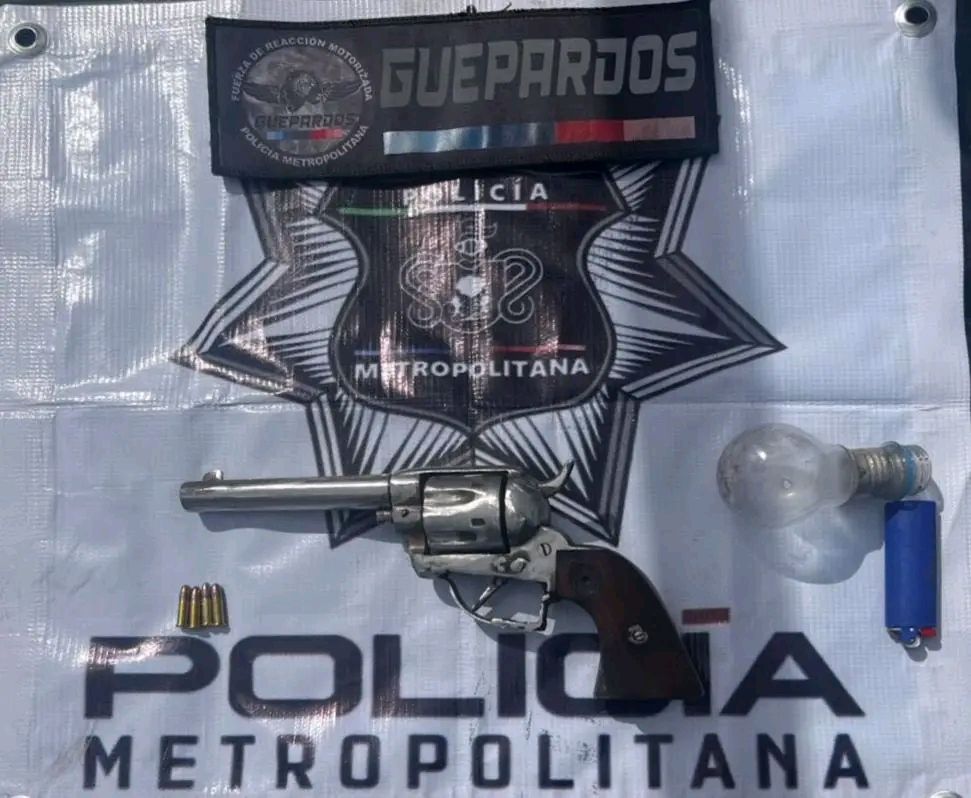 Tras ser alcanzado, le realizaron una inspección y localizaron un revólver calibre .22 con cuatro cartuchos útiles, además de un foco y un encendedor, presuntamente usados para el consumo de droga.