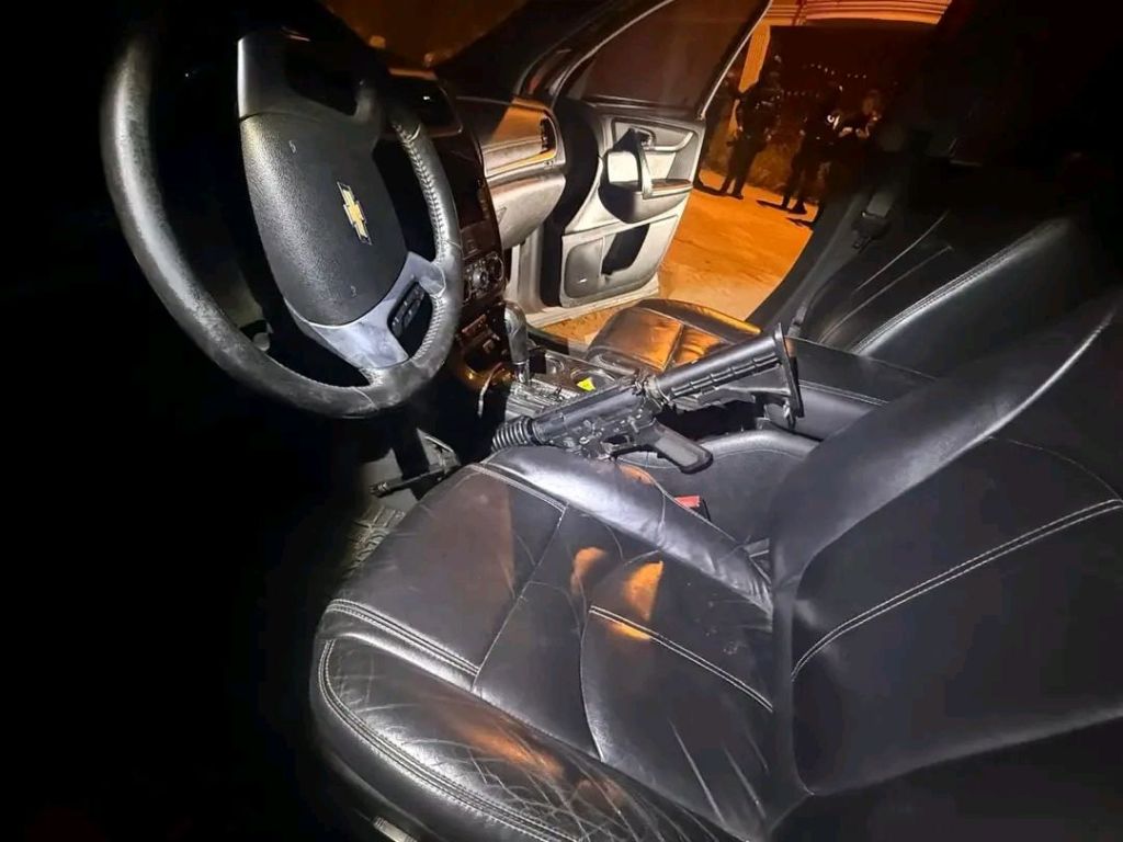 En la Xtrail se encontraron cargadores para rifles AK-47 y AR-15, cartuchos, una cubeta con ponchallantas y un chaleco táctico con placas balísticas.