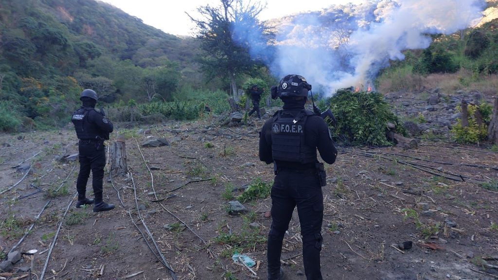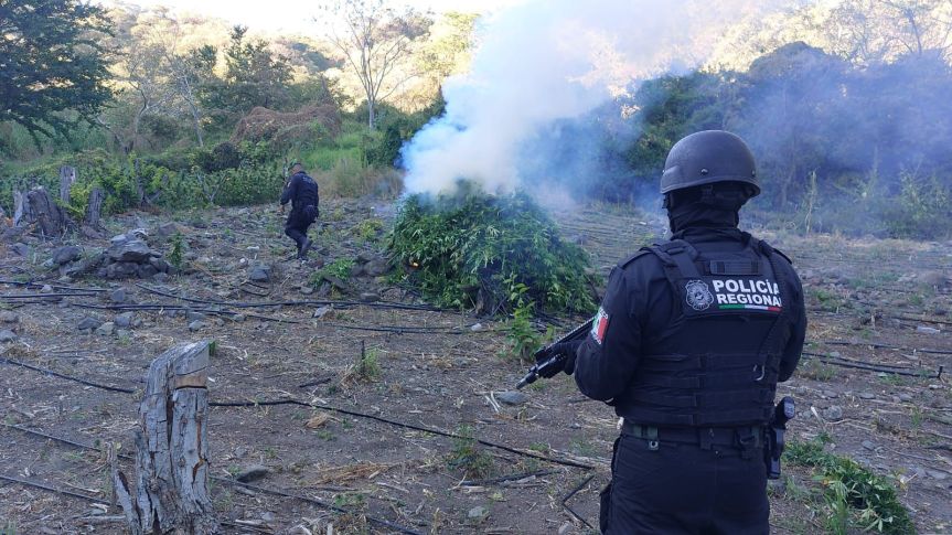 En un operativo en Tequila, la Policía del Estado localizó y destruyó aproximadamente 15 mil plantas de marihuana en un predio cerca de la Carretera a Amatitán.
