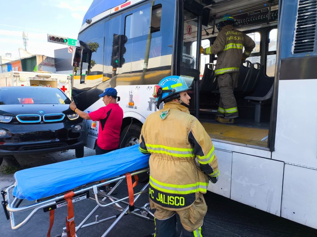 En un incidente ocurrido en la intersección de Calzada Independencia y Calle Industria en Guadalajara, un choque entre un Macrobús y un vehículo compacto dejó un saldo de cuatro personas heridas.