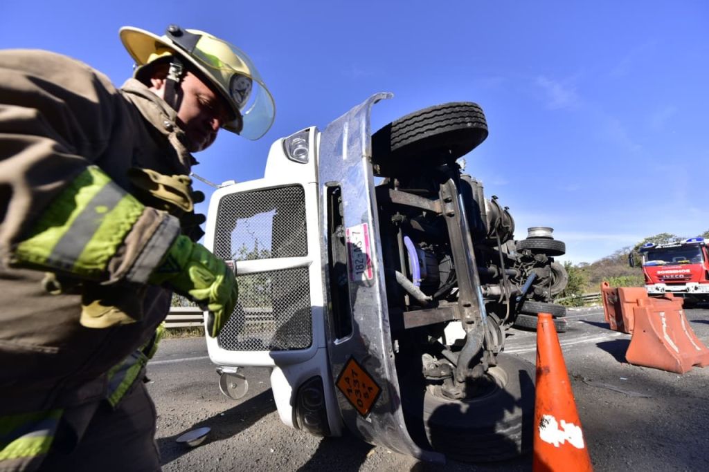Las autoridades confirmaron que no se registró incendio ni derrame del material, únicamente daños materiales y una persona lesionada de manera leve.