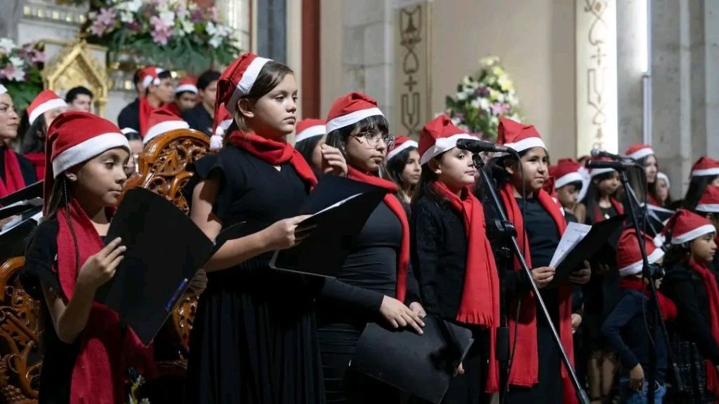 Como grupo invitado participó el Coro ECOS, integrado por 96 niñas, niños y jóvenes, bajo la dirección de Daniel Chávez Domínguez, con temas como Caminito de Belén, Noche de Paz y Christmas Lullaby.