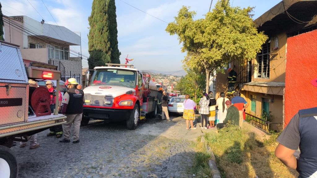 Personal del área médica de Protección Civil de Jalisco, atendió a personas lesionadas por un incendio registrado en una vivienda de la colonia La Mezquitera, en Tlaquepaque.