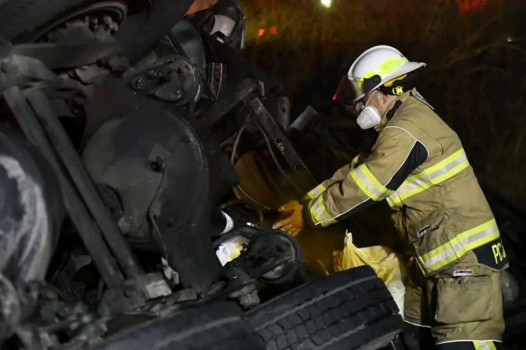 No obstante, cerca de las 20:00 horas la pipa se incendió durante las labores, generando la emisión de gases tóxicos, por lo que se ordenó el cierre total de la carretera.
