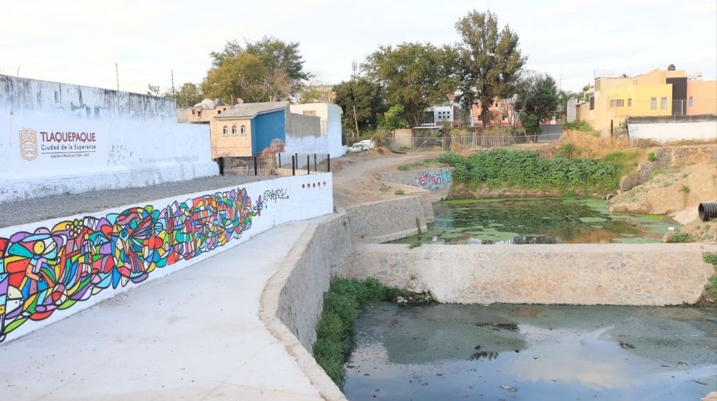La presidenta municipal de San Pedro Tlaquepaque, Laura Imelda Pérez Segura, inauguró las obras complementarias del vaso regulador Mártires de Cananea, ubicado en el Fraccionamiento Revolución.