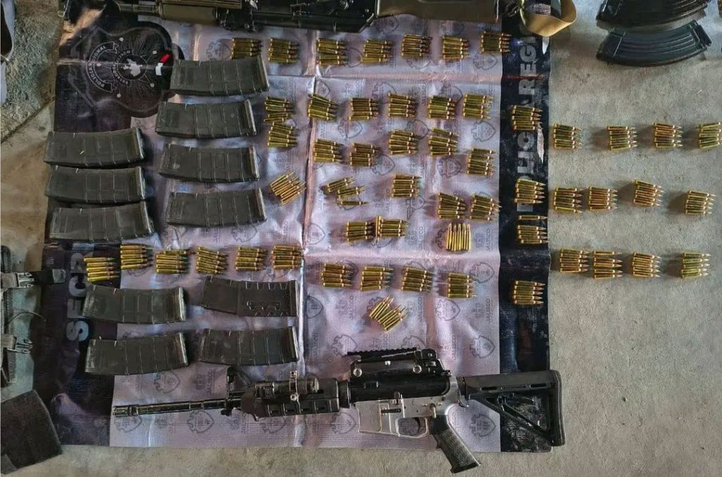 Se aseguraron armas largas y cortas, chalecos tácticos, cargadores y cientos de cartuchos.