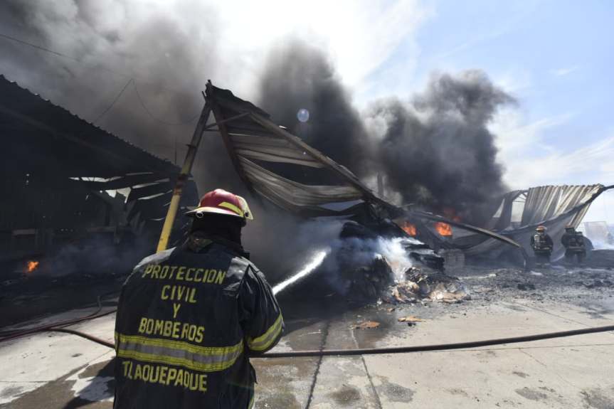 Este domingo se registró un fuerte incendio en una recicladora de la colonia Las Juntas, municipio de San Pedro Tlaquepaque, en la zona frente a El Tapatío.